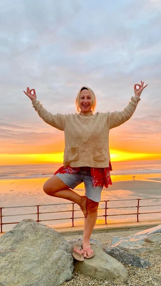 My name is Tina .I am an Artist and live on the beautiful Island of Jersey. In my teenage years my passion was gymnastics and dance .I fell in love with Yoga in my mid twenties , practising regularly for five years . Fast forward twenty five years ..Bringing up our children and creating my Art gallery Fish’n’Beads plus the occasional dusting ! Yoga sadly took a back sit.